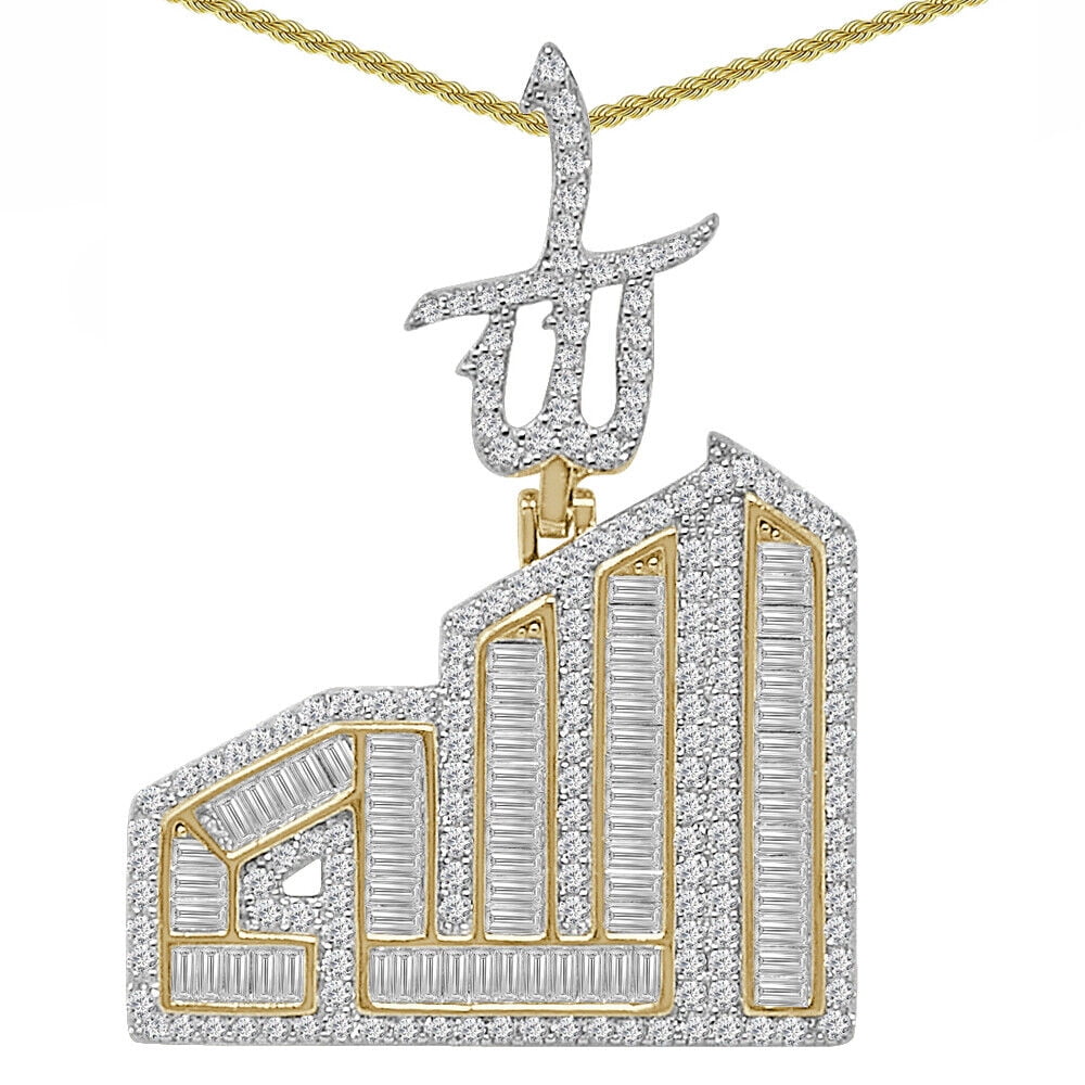 Baguette 22 Grams Real Sterling Silver Allah God Muslim Charm Pendant Chain Set Yellow Gold Finish Walmart Com